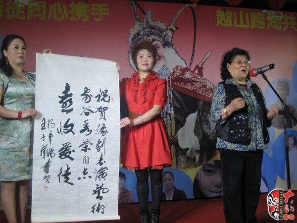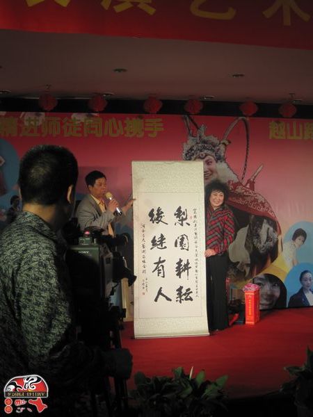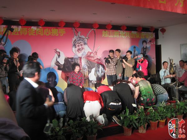 據(jù)了解,這是自1994年第一次收徒起,谷秀榮18年來最隆重的一次收徒儀式,66歲的她在收徒現(xiàn)場激動不已,她說:“我今天不是在收徒,而是在交志同道合的好友?!彼硎編熗絺円獢y手為熱愛戲曲的人放聲歌唱。