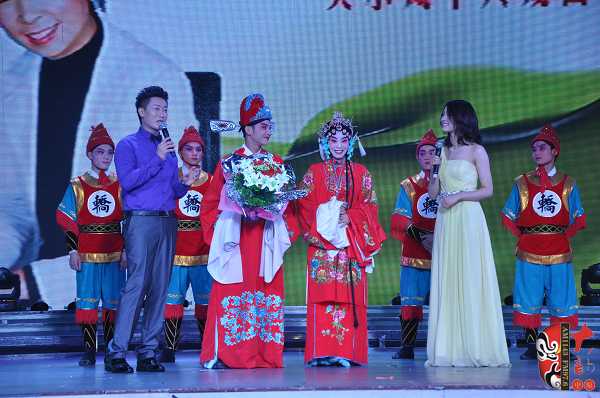 在6月16日舉辦的關(guān)小鳳個人戲曲專場中,關(guān)小鳳之女、24歲的張聰表演了豫劇《情斷狀元樓》“打神告廟”及《抬花轎》的“坐轎”兩折戲。畢業(yè)于河南省藝校的張聰現(xiàn)場表演稍顯稚嫩,但也獲得了觀眾的熱情鼓勵。張聰在接受記者采訪時說,自己戲校畢業(yè)之后到了福建省一閩劇團工作,已經(jīng)有五、六年未接觸豫劇了。媽媽歷經(jīng)艱辛把自己帶大,特別不容易,這次為了支持媽媽的專場演出,她專程回河南、花十天時間趕排了兩折戲……在張聰表演完《抬花轎》的“坐轎”一折,一位身穿狀元紅袍、手捧鮮花、操南方口音的英俊小伙上臺向“周鳳蓮”求婚,經(jīng)張聰介紹,觀眾才豁然明白,英俊小伙乃她的老公,結(jié)婚時,媽媽關(guān)小鳳因為忙于工作未能參加,借此現(xiàn)場要補行跪拜大禮,以感謝母親的養(yǎng)育之恩。此情此景,讓現(xiàn)場不少觀眾為之動容。