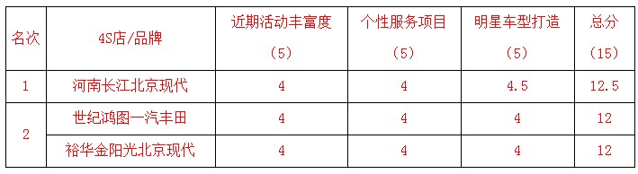 河南長(zhǎng)江北京現(xiàn)代、世紀(jì)鴻圖一汽豐田、裕華金陽(yáng)光北京現(xiàn)代 分列【紅榜】1,2,3名!