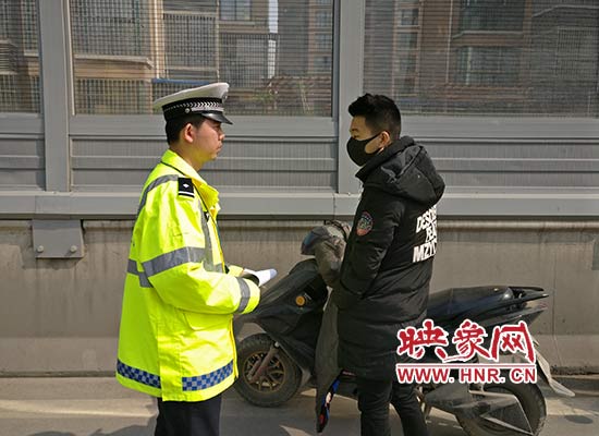 民警攔下一輛違法行駛電動車