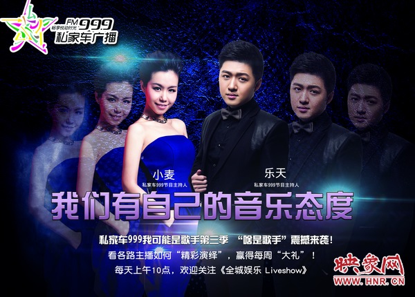 自3月30日起,上午10點至11點私家車999《全城娛樂live show》,“我可能是歌手”第三季期待你的收聽!