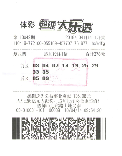 (映象網記者 袁野)4月14日,體彩大樂透第18042期進行派獎第二期的開獎,前區(qū)開出號碼03、19、25、29、35,后區(qū)開出號碼05、09。
