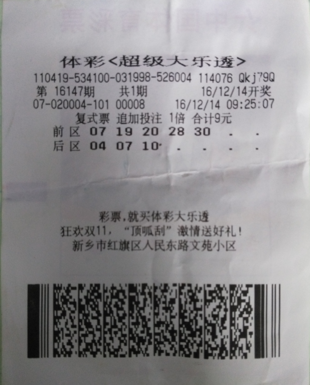 據(jù)尚先生介紹,他每次購(gòu)買彩票都是自己根據(jù)走勢(shì)圖和感覺進(jìn)行選號(hào),復(fù)式投注是他的最愛。近期“大樂透”一等獎(jiǎng)?lì)l出,而復(fù)式投注命中一等獎(jiǎng)的幾率更是非常高。尚先生說(shuō):“我每次購(gòu)買‘大樂透’都不會(huì)忘記追加,追加投注帶來(lái)的獎(jiǎng)金對(duì)于復(fù)式票是非??捎^的?!鄙邢壬ㄟ^復(fù)式追加票共獲得本期中獎(jiǎng)獎(jiǎng)金也達(dá)到了5萬(wàn)多元。