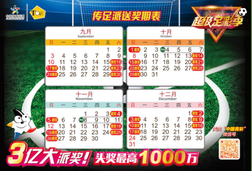 根據(jù)9月-12月的足彩競猜場次安排,各周末獎期受注賽事均以歐洲五大聯(lián)賽為主,其中9月份14場勝平負(fù)游戲和任選9場游戲的指定派獎期為第17134期、17135期、17139期、17140期、17144期、17145期(10月1日停售)。也就是說,未來連續(xù)3個周末獎期均有派獎。今年10月2日-8日、11月6日-12日兩周是國際比賽日,周末五大聯(lián)賽將暫停,預(yù)計(jì)將指定當(dāng)周中獎期派獎,受注賽事為各大洲世界杯預(yù)選賽及部分國家隊(duì)友誼賽。