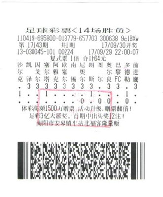 南陽年輕彩民中足球彩票(14場勝負(fù))46萬余元