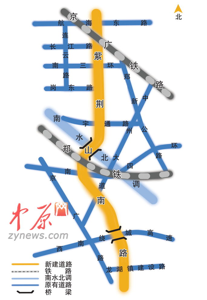 紫荊山南延道路的打通將鄭州市區(qū)與新鄭龍湖緊密連接起來,該工程預計到2016年主體完工,屆時,龍湖大學城的學生通往鄭州市區(qū)將更為便利,而鄭州市民去往新鄭機場也多了一條捷徑。