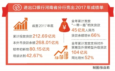 1月29日,進(jìn)出口銀行河南省分行行長吳啟金表示,過去一年,分行努力貫徹習(xí)近平新時代中國特色社會主義思想,助力河南打造內(nèi)陸開放新高地。截至2017年底,進(jìn)出口銀行河南省分行累計(jì)投放貸款212.69億元,本外幣貸款余額268.01億元,有力助推我省企業(yè)“走出去”。