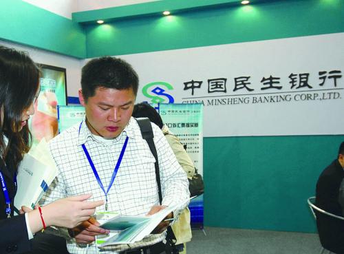 民生銀行(600016)上海分行工作人員正在向企業(yè)主介紹有關信息。 張衡年/攝影