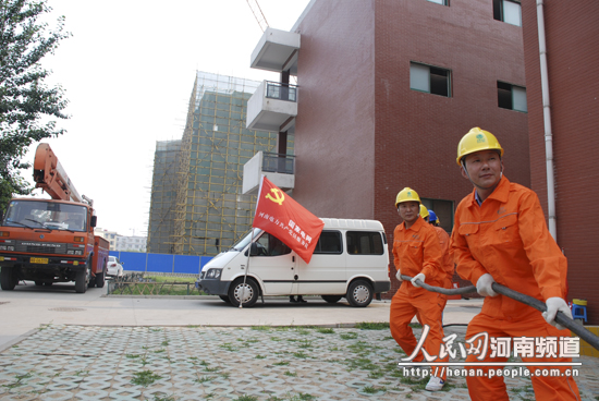 人民網(wǎng)南陽8月3日電 烈日炎炎,揮汗如雨,為確保第七屆全國農(nóng)運(yùn)會順利舉辦,實(shí)現(xiàn)農(nóng)運(yùn)會供電“電網(wǎng)安全零事故、保電現(xiàn)場零停電、供電設(shè)備零缺陷”為目標(biāo),南陽市電力公司職工頂著高溫酷暑緊張施工。