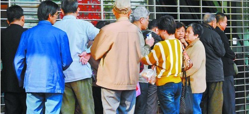 昨日8點(diǎn)30分記者在工行福州吉祥支行營(yíng)業(yè)網(wǎng)點(diǎn)看到,雖然周末上午營(yíng)業(yè)時(shí)間為9點(diǎn),但仍有20余位老人自發(fā)地在網(wǎng)點(diǎn)門(mén)口排隊(duì)等待辦理國(guó)債認(rèn)購(gòu)等相關(guān)業(yè)務(wù)(如上圖)。一位客戶(hù)告訴記者,只要有閑錢(qián),往年遇上國(guó)債發(fā)行她都會(huì)購(gòu)買(mǎi),昨日國(guó)債發(fā)行她同樣不會(huì)錯(cuò)過(guò)。