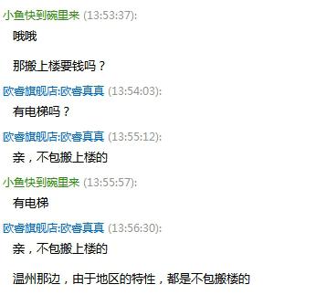 據(jù)小編調(diào)查發(fā)現(xiàn)(如下圖),部分商家表示免費送貨,但卻不送上樓,上樓需要額外支付搬運費;也有部分商家是按樓層高低收費,如:三樓以下不收“上樓費”,三樓以上,收費按樓層高度遞增。這個問題消費者一定要與客服交流清楚,否則商品運來了,還要掏錢才能進(jìn)屋,或者要自己動手搬,麻煩就大了。