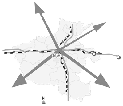 “米”字形快速鐵路網(wǎng),是國務(wù)院批復(fù)《中原經(jīng)濟(jì)區(qū)規(guī)劃》和《鄭州航空港經(jīng)濟(jì)綜合實(shí)驗(yàn)區(qū)發(fā)展規(guī)劃》明確的重大工程,具體就是在京廣和徐蘭“十”字形快速客運(yùn)通道基礎(chǔ)上,建設(shè)鄭州至萬州、鄭州至濟(jì)南、鄭州至合肥、鄭州至太原的高速鐵路。根據(jù)鄭州都市區(qū)整體規(guī)劃,未來將形成以鄭州為中心的“米”字形高鐵輻射網(wǎng)絡(luò),實(shí)現(xiàn)北京、西安、武漢等30多個(gè)城市的“3小時(shí)經(jīng)濟(jì)圈”。