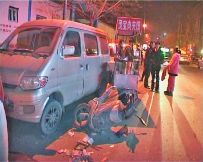 被撞的小吃攤一個是賣肉夾饃的,一個是賣鴨脖的。據(jù)賣肉夾饃的攤主說,肇事車司機是一個二三十歲的男子,當時他曾停下來說“到前邊會停下來”,沒想到竟加速跑了。