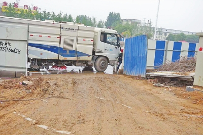 4月26日早上,負責清掃西三環(huán)與化工路交叉口附近路面的環(huán)衛(wèi)工吳師傅和石師傅,前腳剛把路上的泥漿清掉,不料很快又出現(xiàn)泥漿。順著泥印,環(huán)衛(wèi)工們很快找到路邊一家工地。此時,一輛輛輪胎上粘滿泥巴的工程車,正從工地里出來駛向馬路。環(huán)衛(wèi)工們一怒之下,將清掃車擋在工地門口。
