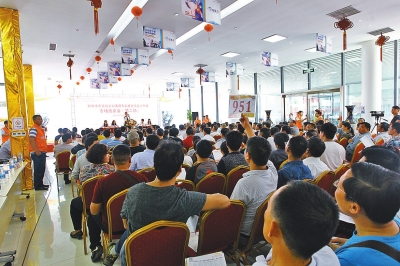 昨天下午1點半,中州大道與柳林東路交叉口西北角上汽車享汽車服務(wù)廣場車享拍鄭州拍賣服務(wù)中心,500名競拍人熱情高漲,等候鄭州第二次公車拍賣正式開始。