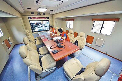 據(jù)介紹,地震車(chē)內(nèi)部可容納十余人開(kāi)會(huì)。河南省地震局供圖