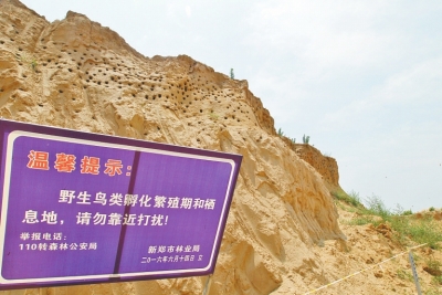 為保護鳥兒安全度過繁育期,河南省森林公安局、河南省野生鳥類觀察學會在土堆前立了一塊警示牌,上書“鳥類棲息地,禁止靠近”,呼吁社會善待候鳥。而新鄭市林業(yè)局林政科有關人員在接受記者采訪時亦稱:“我們只要一接到群眾舉報,立即會同公安機關,盡快把這些燕子集中育雛地保護起來,除告知施工單位停工外,還在一定區(qū)域內拉起警戒線,禁止無關人員驚擾燕子孵卵育雛,今年新鄭市總共有三處燕子育雛地被集中保護,新鄭市保護崖沙燕的善舉曾得到過中央級媒體的表揚,接下來我們會再接再厲,爭取做得更好?!?/p>