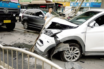 范先生的說(shuō)法得到路口東北角一家醫(yī)院保安李師傅的證實(shí)。李師傅說(shuō),事發(fā)時(shí),他就面向西南坐在醫(yī)院門口,當(dāng)時(shí)南向北是綠燈,東向西是紅燈:“我先聽(tīng)到了刺耳的剎車聲,抬頭看到白色現(xiàn)代帶著刺耳的剎車聲從南邊沖過(guò)來(lái),然后拐向東北角,撞到了在路口等紅燈的淺灰色轎車?!?/p>