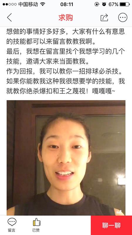 拜MVP為師,難道僅憑一招扯燴面的手藝?8月27日,女排主攻手朱婷在某分享經(jīng)濟(jì)平臺(tái)發(fā)布了求購(gòu)視頻,透露了自己在緊張的訓(xùn)練之余,希望學(xué)到諸如土耳其語(yǔ)、做燴面等新技能。而作為交換,她愿教對(duì)方一招“絕殺暴扣”和“王之蔑視”!中國(guó)女排MVP上網(wǎng)“賣藝”,分享經(jīng)濟(jì)的玩法說(shuō)火就火。