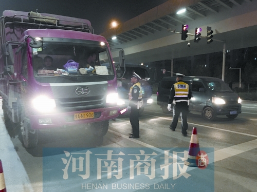 14日夜間開始,交警部門在鄭州市的三環(huán)和四環(huán)重要路口等處部署警力,展開嚴(yán)查。截至15日凌晨近2時(shí),在鄭州市的統(tǒng)一行動(dòng)中共查處貨車、渣土車等161輛,處罰駕駛?cè)?3名。