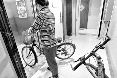 把自行車(電動車)推到家里或家所在的樓層走廊里,是很多居民的選擇。