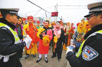 河南交警查車時發(fā)現(xiàn)一輛車由“孫悟空”駕駛,車上乘客則是《西游記》中的一群“神仙妖怪”,這則消息昨天成為網絡熱點。事情真相如何?昨天大河報記者聯(lián)系到河南省公安廳交警總隊相關人士進行核實。