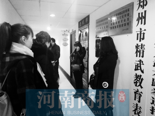 學(xué)生家長們在培訓(xùn)班門前,商量怎么找到負(fù)責(zé)人