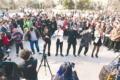 問及跳尬舞的人都去哪了,為何不讓跳了,一個(gè)帶孩子游園的老人說(shuō):“啥尬舞,就是打架舞、抽筋舞,一點(diǎn)都不好看,教孩子們學(xué)打架?不好,也不美,我以前來(lái)這里,看到他們擠堆看,我就繞開,我討厭這種舞?!?/p>