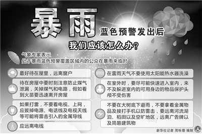 對于雨天不得不出行的市民,市防汛辦工作人員也提醒,一些安全常識要牢記,如雷雨天氣中不要在涵洞、立交橋下、低洼地、較高的墻體、樹木下避雨,有警示標志的地段切勿進入。遇到打雷,行人應停止行走,兩腳并攏中蹲下。汛期當橋涵、隧道積水超過30厘米,普通道路積水超過40厘米時,交警部門將封閉相關路段交通,設置禁止通行標示牌。市民如遇鐵路立交橋下積水,應留意水位標識和相關警示,在水深未知的情況下勿冒險涉水。在強降雨過程中,為加快退水,市政人員會掀開井蓋,市民要留意警示標志,繞開窨井,確保安全。若車輛不慎掉入深水區(qū),切勿打開車窗或試圖打開車門,應努力呼吸,找好準備逃生的門把手,等水慢慢涌入車內,即將漫到車頂時,深吸一口氣,然后屏氣打開車門迅速游出。