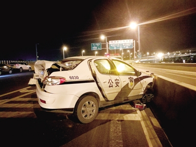 處理事故時,執(zhí)行任務的警車遭到撞擊