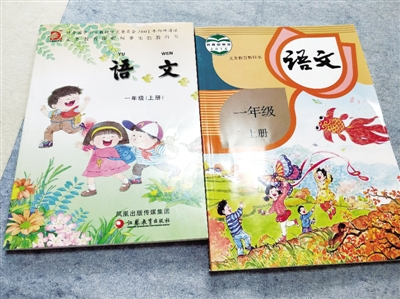 在金水區(qū)文化路二小教導(dǎo)主任趙健娜的辦公桌上擺放著兩本語文教材,一本是江蘇教育出版社出版的小學(xué)語文一年級上冊教材(簡稱“蘇教版”),一本是教育部審定、由人民教育出版社出版的小學(xué)語文一年級上冊教材(簡稱“部編本”)。