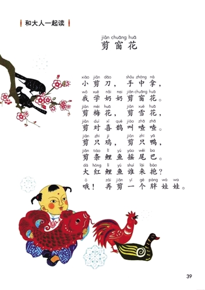 值得一提的是,“部編本”新教材增加了“和大人一起讀”欄目??傊骶帨厝迕艚淌谠f,“和大人一起讀”是新教材的亮點之一。大人指父母、老師或其他家庭成員與親友。一年級剛上學(xué)的學(xué)生自己還不會讀,所以讓大人和他們一起讀。