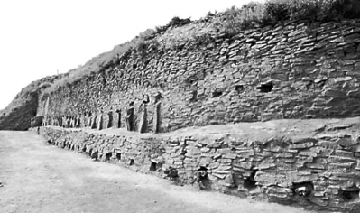 石峁遺址的皇城臺東護(hù)墻北段上部第二、三階護(hù)墻 資料圖