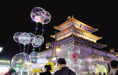 本報訊 連日來,朋友圈不少人都曬出了一種新型的夜晚逛街酷炫玩具——“發(fā)光氣球”!不止在鄭州,在開封等省內(nèi)城市,還有杭州、南京、武漢等也在風靡著這款“發(fā)光氣球”。夜色里遠看像是一串彩色燈飄浮在空中,深受孩童與情侶的追捧,悄然在街頭躥紅。
