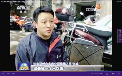 1月4日,大雪紛飛,穿著短袖搞搶修的張威,迅速火爆了朋友圈和媒體圈,被親切地稱為“短袖哥”,甚至上了央視新聞聯(lián)播。作為一名退伍軍人,張威從2000年就走進(jìn)自來水公司,扎根一線搞搶修,曾獲得鄭州市職工技術(shù)運(yùn)動會管道工冠軍,被授予市五一勞動獎?wù)隆?/p>