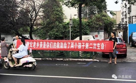 為孩子發(fā)起水滴籌捐款的愛心網(wǎng)友“只若初見”:下班時(shí)路過這里,看到獲救孩子的家人拉橫幅感謝大家:原本想和孩子的爸爸說句話,想了一下,還是默默地祝福。