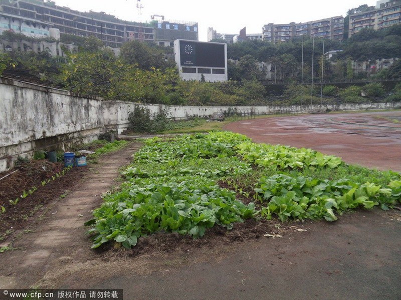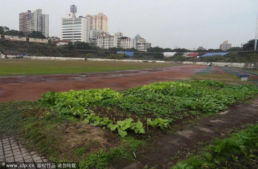 2012年11月26日,重慶,因改造修繕遲遲不動(dòng)工,場(chǎng)地日常的維護(hù)和管理越來越困難,新中國第一座甲級(jí)體育場(chǎng)--大田灣體育場(chǎng)荒廢成菜地。重慶大田灣體育場(chǎng),是新中國第一個(gè)甲級(jí)體育場(chǎng),1951年在賀龍的主持下修建,占地面積12萬平方米,是建國初期重慶十大建筑之一。大田灣體育場(chǎng)曾經(jīng)一直是重慶各足球俱樂部的主場(chǎng),在中國足球甲A和中超時(shí)期,大田灣體育場(chǎng)先后經(jīng)歷過前衛(wèi)寰島、重慶隆鑫、重慶力帆等足球隊(duì),見證了重慶足球的輝煌與滄桑。