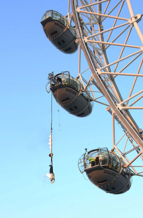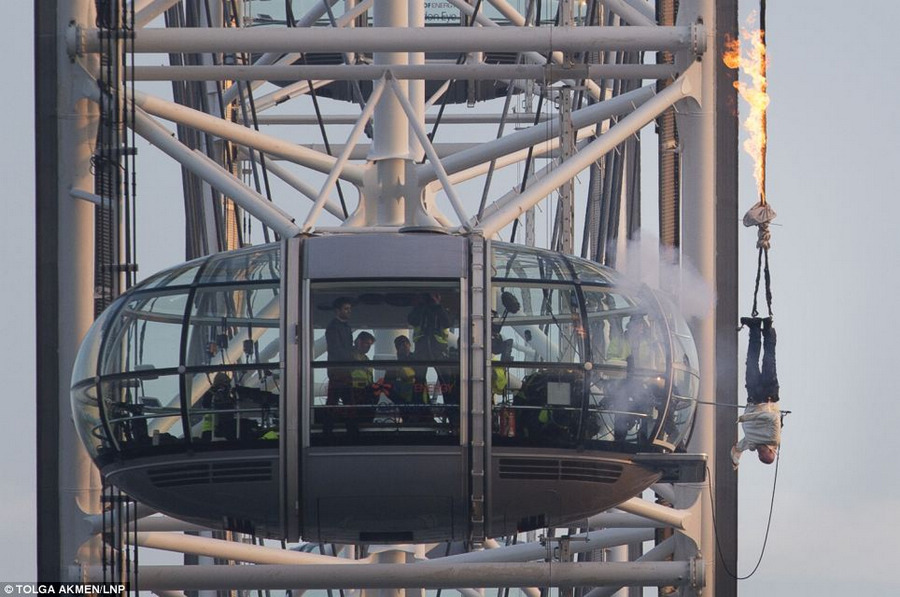 喜愛魔術(shù)的人一定不會(huì)對(duì)逃生術(shù)感到陌生。然而,在幾十米的高空表演玩命逃生術(shù)的恐怕并不多見。據(jù)英國(guó)《每日郵報(bào)》3月5日?qǐng)?bào)道,“倫敦眼”摩天輪上5日就上演了一幕玩命逃生術(shù):表演者將自己倒掛在摩天輪上,僅用了幾分鐘就擺脫了燃燒的繩子成功逃生。