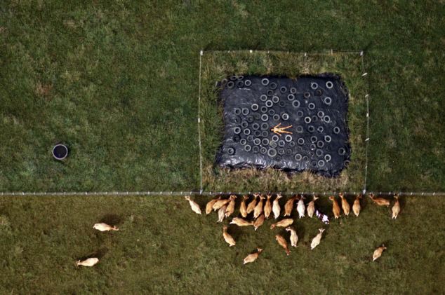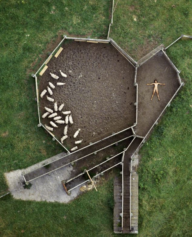 據(jù)悉,1984-1987年間,約翰利用直升機(jī)航拍了一組妻子的裸體照片。妻子在農(nóng)田、養(yǎng)豬場、機(jī)場跑道、海邊、鐵軌及移動(dòng)的汽車上一絲不掛,舒展著四肢。他說:“在那些地點(diǎn)拍攝裸體照片,可以反襯出人類在大千世界的渺小和微不足道。”
