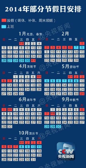 昨日,2014年節(jié)假日放假安排公布。消息發(fā)布后,已有網(wǎng)友迅速根據(jù)新的放假安排計(jì)算出2014拼假攻略,總共只需10天年假,即可將2014的元旦、春節(jié)、五一和十一假期變長(zhǎng)。