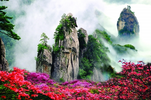 堯山俊俏的山峰、秀美的瀑布、奇異的迎客松、動(dòng)植物等資源一直深深吸引著廣大游客,特別是春季,堯山山花次第開(kāi)放,踏青拜佛泡溫泉,在游客中掀起了去堯山旅游的大潮。筆者從堯山景區(qū)了解,堯山杜鵑節(jié)已于4月20日拉開(kāi)帷幕,今年的杜鵑特別繁茂、艷麗,目前,山門(mén)至迎鳳樹(shù)附近的杜鵑已全部開(kāi)放,叢叢紅、粉杜鵑綻放在懸崖上,飽含著堯山的熱情奔放,掩映于叢林中,蘊(yùn)藏著堯山的含蓄與嬌羞。