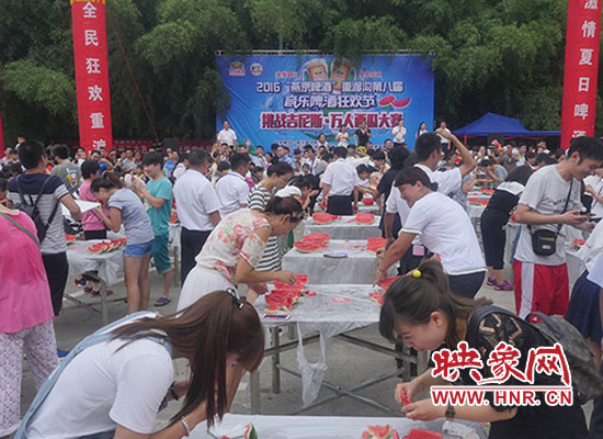 “挑戰(zhàn)吉尼斯 萬(wàn)人吃西瓜”是由欒川重渡溝風(fēng)景區(qū)和鄭州支點(diǎn)旅游品牌策劃有限公司聯(lián)合打造的2016“燕京啤酒”重渡溝第八屆音樂(lè)啤酒狂歡節(jié)狂歡不停歇第三期主題活動(dòng)。當(dāng)日重渡溝景區(qū)熱鬧非凡,擺滿誘人西瓜的小方桌次第擺開(kāi),翠綠的皮、鮮紅的瓤、瓜香四溢。游客們熱情參與,現(xiàn)場(chǎng)妙趣橫生。有“推土機(jī)”式掃蕩吃法,有“生猛”地大口吞咽,有小朋友萌態(tài)啃瓜表情十足......真是吃得爽快,玩得暢快,贏得痛快。比賽分為“狼吞虎咽”男子組、“大快朵頤”女子組,每組冠軍將獲得3000元現(xiàn)金大獎(jiǎng)。經(jīng)過(guò)淘汰賽、決賽層層激烈角逐,最終比賽決出男女子組一、二、三等獎(jiǎng)各一名,所有參賽選手都乘興而來(lái),滿載而歸!“來(lái)重渡溝吃西瓜感覺(jué)特別甜,特別痛快!從來(lái)沒(méi)有跟這么多人一起吃西瓜,一口氣連吃三塊還不過(guò)癮!”一位游客笑著對(duì)記者說(shuō)。