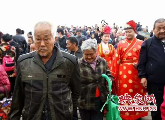 重陽節(jié)老人們?cè)谇迕魃虾訄@樂開了顏