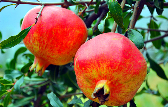 除了秋雨連綿和落葉蕭蕭之外,秋天還是個(gè)收獲的季節(jié)。田野山間里的各色蔬果早已粉墨登場(chǎng),何不趁著大好秋色去采上幾籃子??茨菈簭澲︻^的如拳頭一般大小鮮紅的石榴待您去采摘呢!