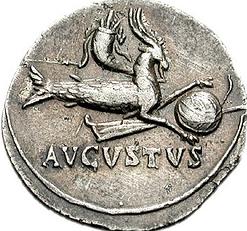 奧克塔維安.凱撒聽完大為欣喜,他希望讓所有人都看到自己那張星盤,于是他將這幅星盤刻成石板置于城市中心以讓所有人都能讀到。后來,在奧克塔維安獲得關(guān)鍵戰(zhàn)役腓力比和亞克興角戰(zhàn)役的勝利后,他成為了古羅馬的皇帝,并將自己的名字改為“奧古斯都.凱撒(63BCE-14CE)”。他統(tǒng)治了羅馬 41年,在他統(tǒng)治下的和平與繁榮則持續(xù)了200年,被成為“Pax Romana(羅馬帝國統(tǒng)治下的和平)”。為了紀(jì)念自己成為帝王的命運(yùn),他鑄了一個圓形銀幣,上面刻有他的上升星座摩羯的標(biāo)志。
