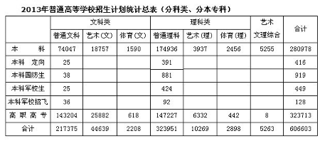 河南省2013年普通高等學(xué)校招生計(jì)劃統(tǒng)計(jì)總表(分科類、分本??疲?/font>