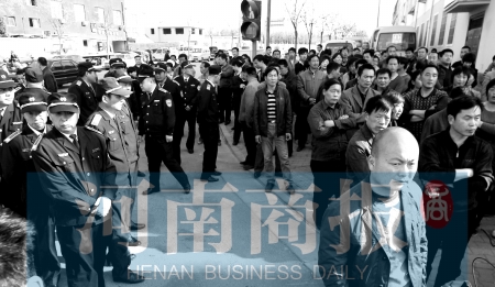 4月5日下午3時(shí)20分許,鄭州市長(zhǎng)江路與工人路交叉口東、西、北三個(gè)方向的路口處,站著近百人,將此處堵得嚴(yán)嚴(yán)實(shí)實(shí),過(guò)往車(chē)輛只能繞行。