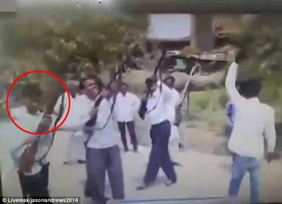印度一對幸福新人26日于中央邦巴德納加爾舉行婚禮,賓客鳴槍慶祝時卻不慎誤射新郎父親,讓38歲的派特爾當場倒地身亡。左一為鳴槍賓客,右一為受害者。