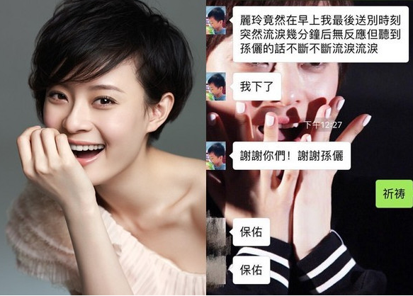 據(jù)臺灣媒體《東森新聞云》3月13日報道,大陸女星孫儷因為演出《后宮甄嬛傳》、《羋月傳》等戲,紅透兩岸三地。最近有名叫“麗玲”的粉絲腦死昏迷36小時;沒想到孫儷得知,本人竟錄音,聲聲喚“趕緊醒過來”;并答應(yīng)愛畫圖的她,等她醒來,“我就坐在你面前讓你畫。”沒想到她聽完竟流淚,也醒過來了。