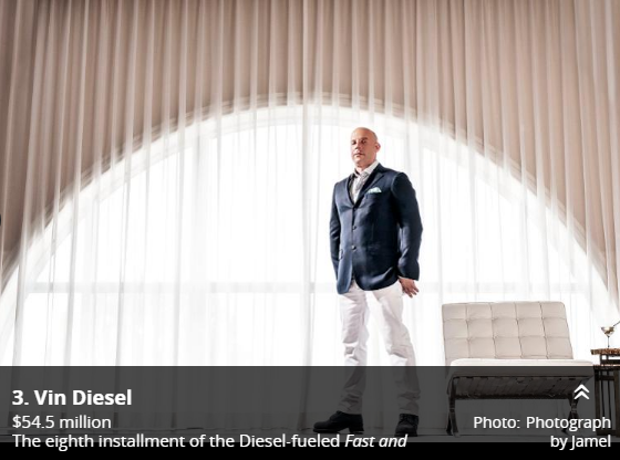 搜狐娛樂訊 據(jù)香港媒體報(bào)道,美國財(cái)經(jīng)雜志《福布斯》公布本年吸金力最強(qiáng)男星排行榜,主演《變形金剛:最后的騎士》(Transformers:The Last Knight)的馬克·沃爾伯格(Mark Wahlberg)過去2個(gè)月收6,800萬美元封冠,電影《速度與激情8》兩位男主角道恩·強(qiáng)森(Dwayne Johnson)及范·迪塞爾(Vin Diesel)分別以6,500萬美元及5,450萬美元排2及3名,喜劇演員亞當(dāng)·桑德勒(Adam Sandler)以5,050萬美元排第4,而成龍則以4,900萬美元排第5。
